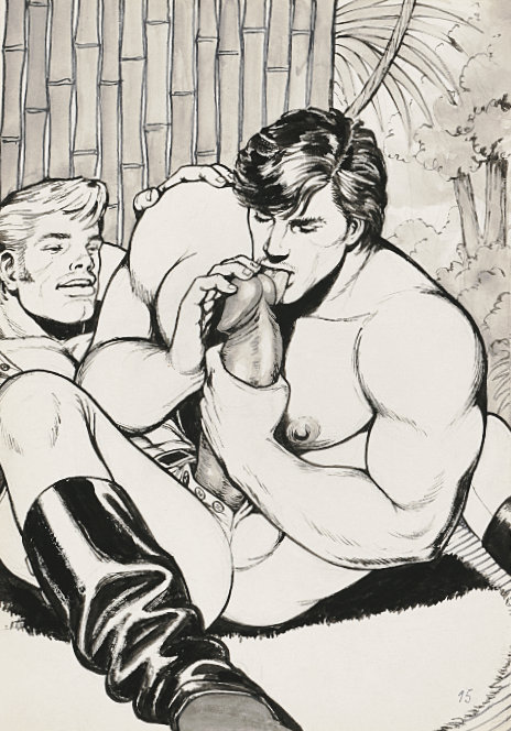 Tom of Finland original drawing of the fourteenth panel in the sexually explicit comic book "Jack in the Jungle 1 - The White Hunter".